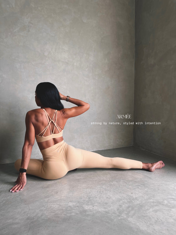 Designed to move with you, stretchy, comfy, and made to flatter — hugging you in all the right places without feeling restrictive. Wear her to your next Pilates class, then throw on a blazer or oversized shirt and take her straight to the streets.