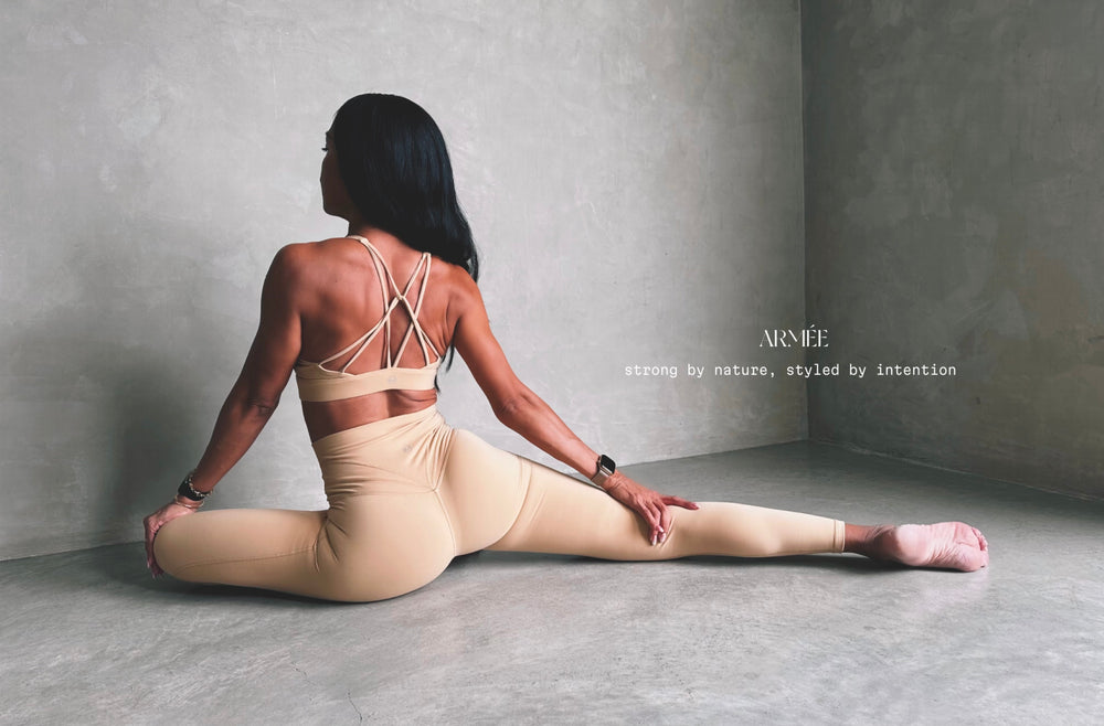 Designed to move with you, stretchy, comfy, and made to flatter — hugging you in all the right places without feeling restrictive. Wear her to your next Pilates class, then throw on a blazer or oversized shirt and take her straight to the streets.